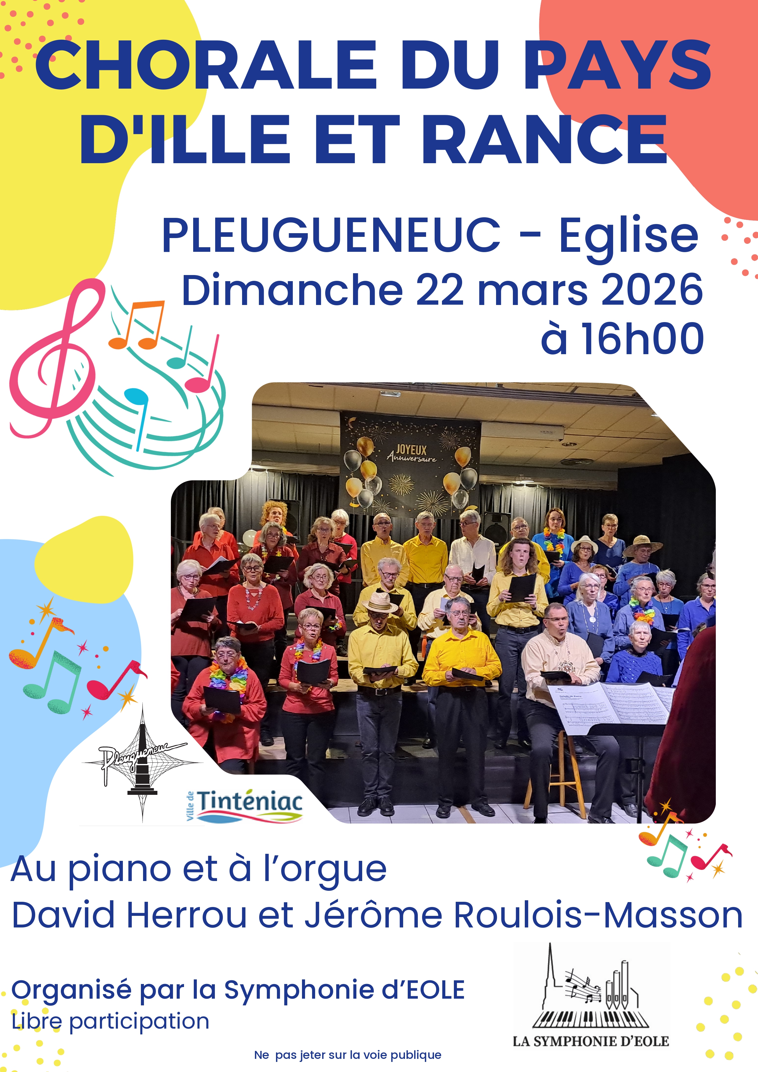 - Dimanche 22 mars : Concert avec la chorale « Ille et Rance » de Tinténiac – 16h00 à l’église